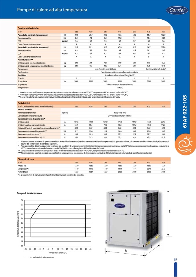 *** CondizionistandardEurovent:temperaturaacquainentrata/uscitadell’evaporatore=40°C/45°C,temperaturadell’ariaesternabu/bs=7°C.