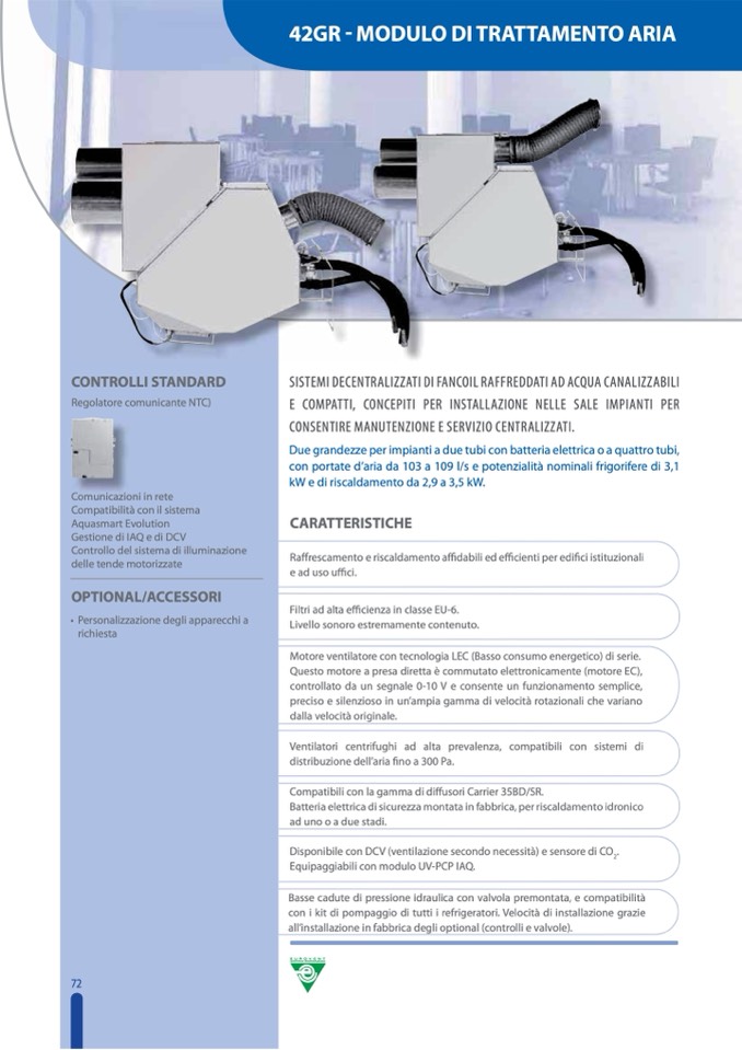 Compatibili con la gamma di diffusori Carrier 35BD/SR.