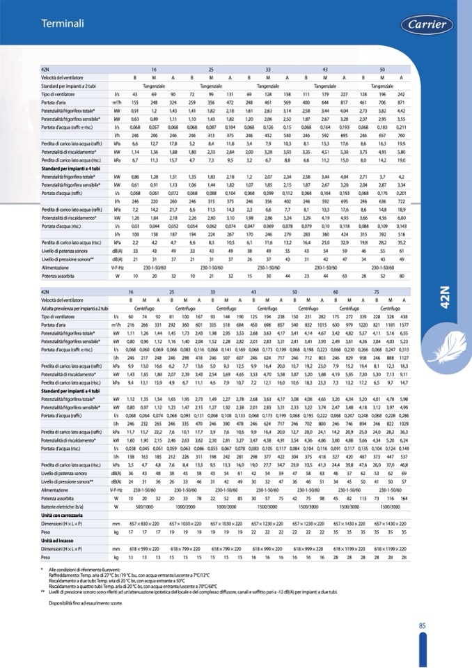 ** Livelli di pressione sonoro sono riferiti ad un’attenuazione ipotetica del locale e del complesso diffusore, canali e soffitto pari a -12 dB(A) per impianti a due tubi.