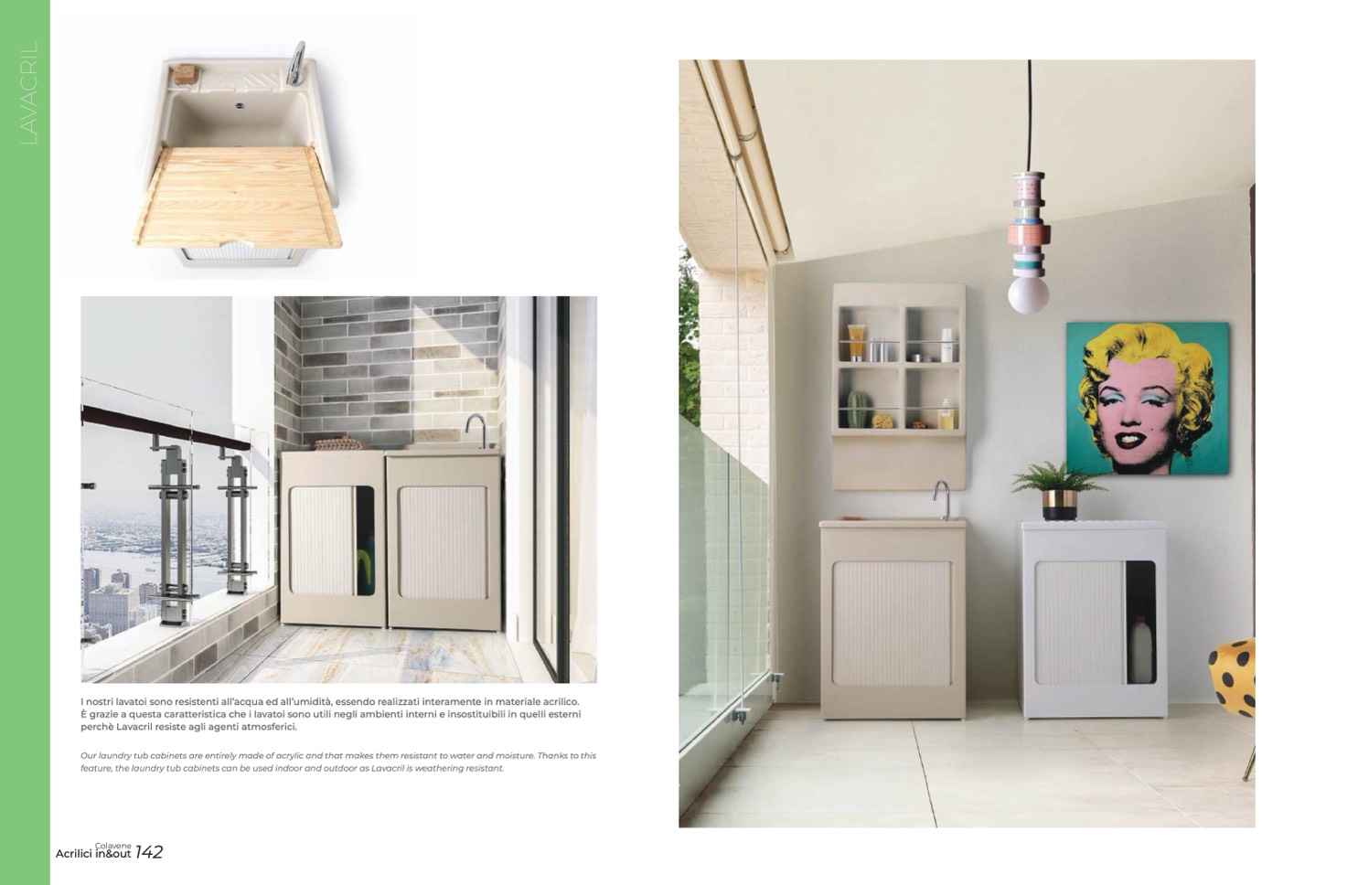feature, the laundry tub cabinets can be used indoor and outdoor as Lavacril is weathering resistant.