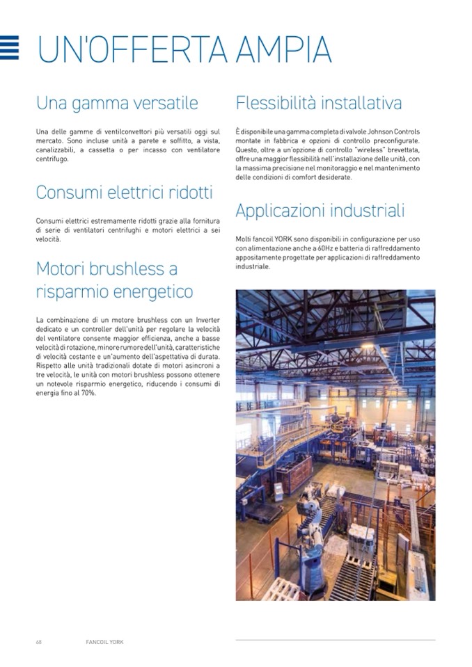 Molti fancoil YORK sono disponibili in configurazione per uso