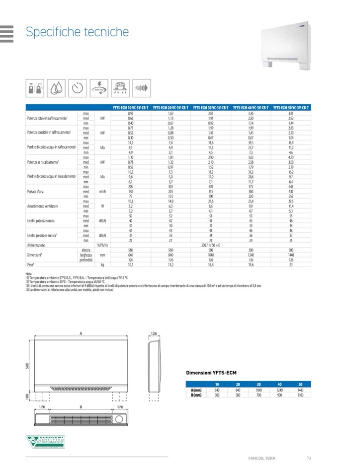 (1) Temperatura ambiente 27°C B.S., 19°C B.U. - Temperatura dell'acqua 7/12 °C