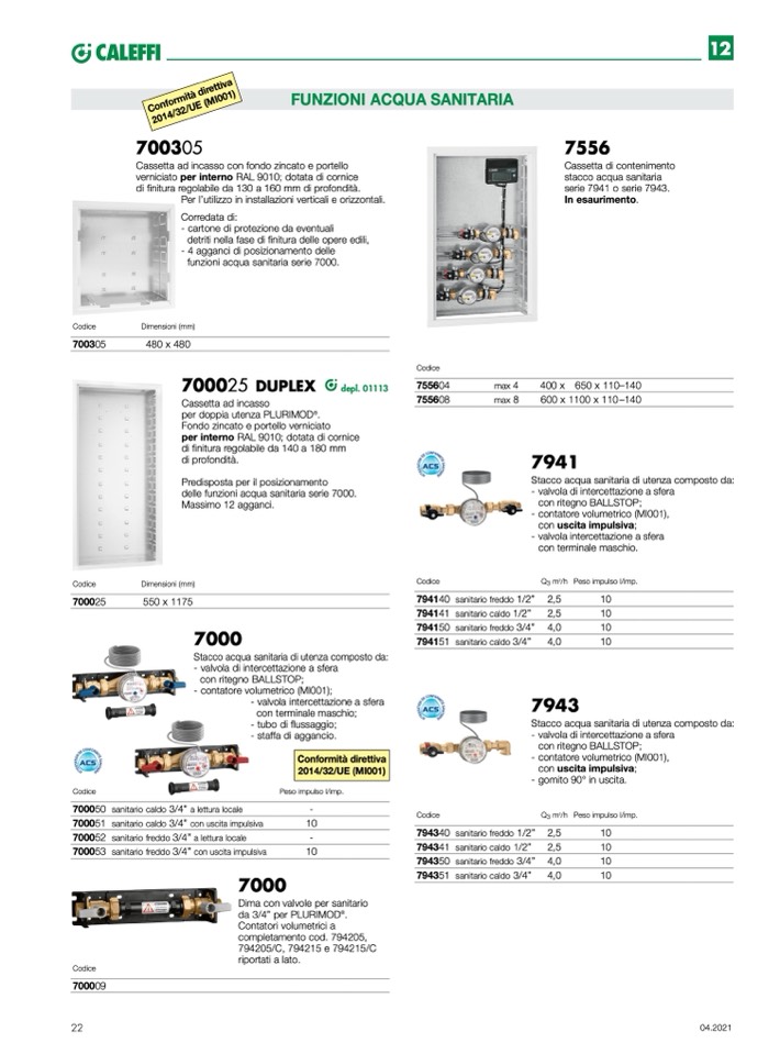 funzioni acqua sanitaria serie 7000.