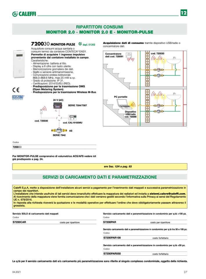 Caleffi S.p.A. mette a disposizione dell’installatore alcuni servizi a pagamento per l’inserimento dati mappati e successiva parametrizzazione in