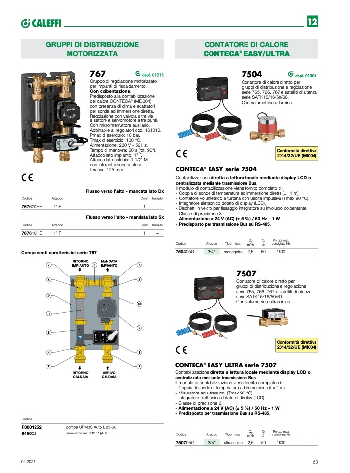 - Contatore volumetrico a turbina con uscita impulsiva (Tmax 90 °C).