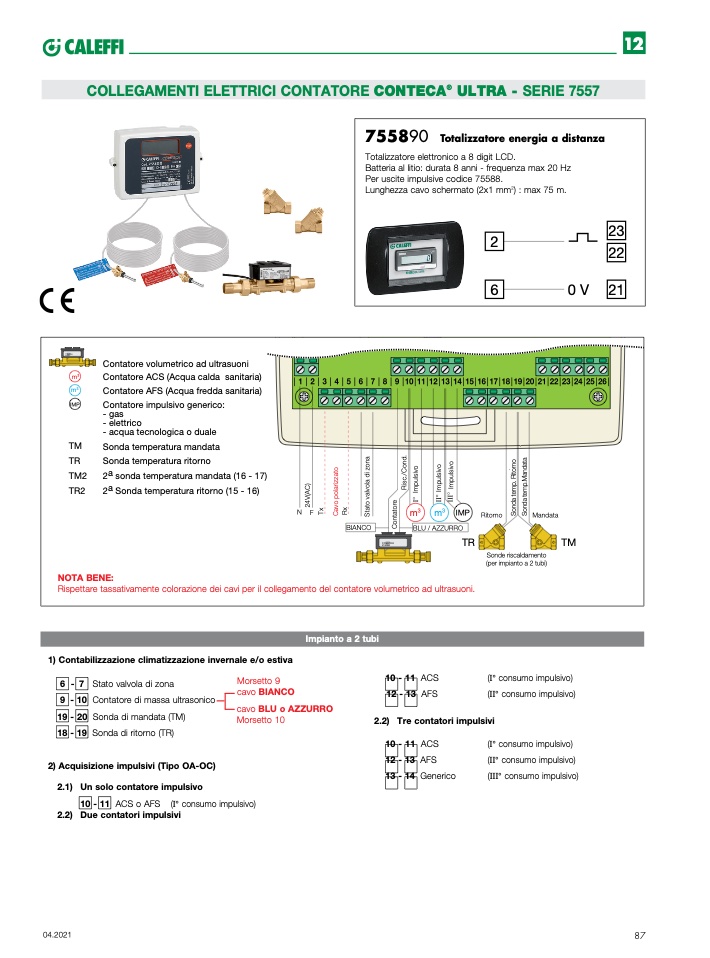 Rispettare tassativamente colorazione dei cavi per il collegamento del contatore volumetrico ad ultrasuoni.