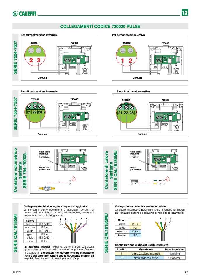 Collegamento dei due ingressi impulsivi aggiuntivi