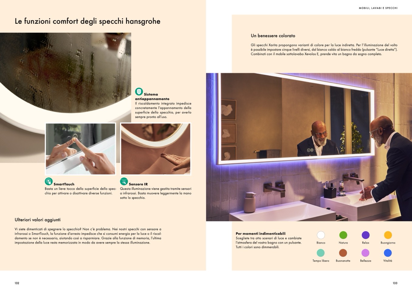Gli specchi Xarita propongono varianti di colore per la luce indiretta. Per l’illuminazione del volt