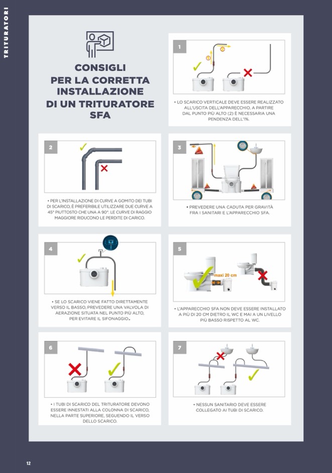 • I TUBI DI SCARICO DEL TRITURATORE DEVONO