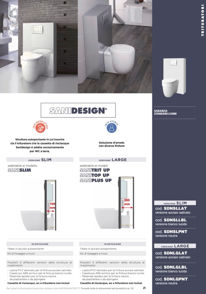 Per tutte le informazioni tecniche visitare il sito WWW.SANITRIT.IT. Trovate tutte le dimensioni dei prodotti a p. 23