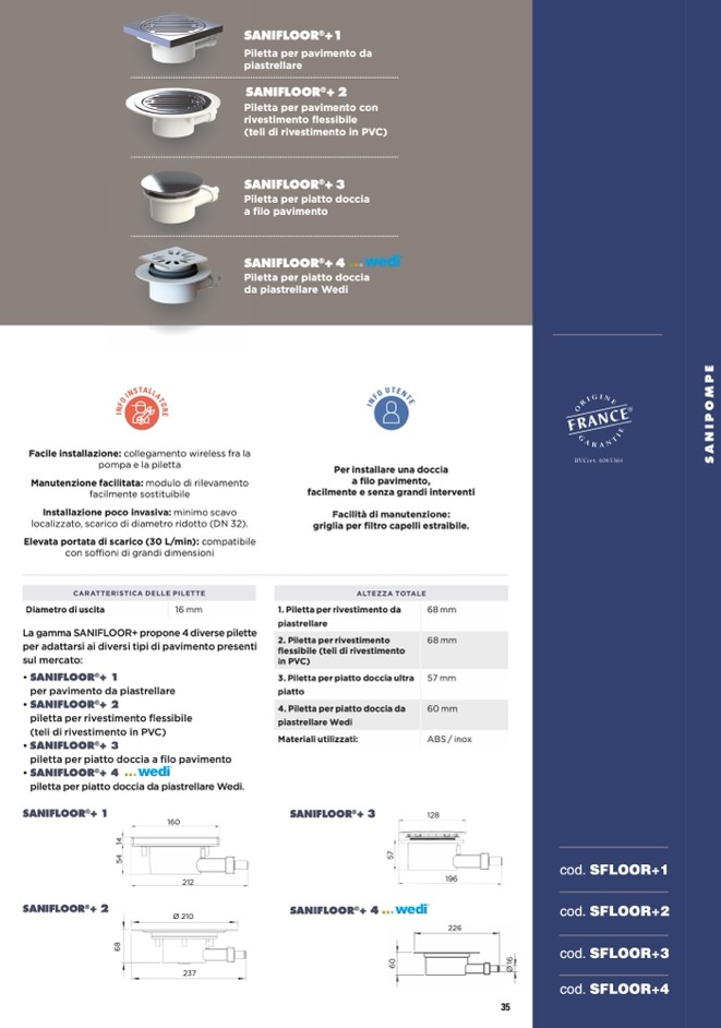 La gamma SANIFLOOR+ propone 4 diverse pilette