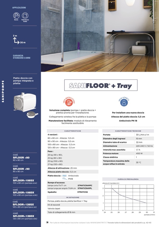 Pompa, piatto doccia, piletta Sanifloor + Tray