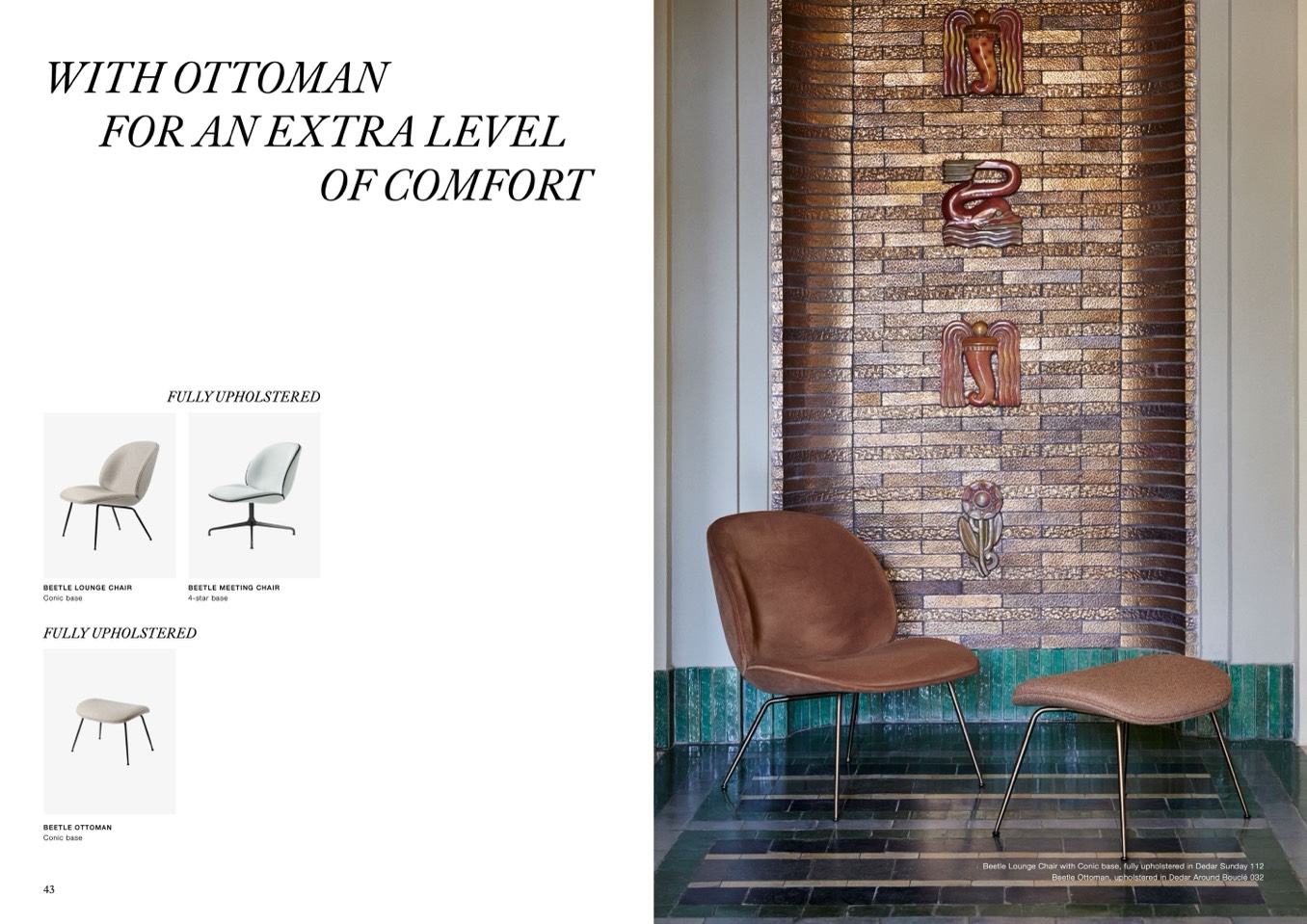 Beetle Lounge Chair with Conic base, fully upholstered in Dedar Sunday 112