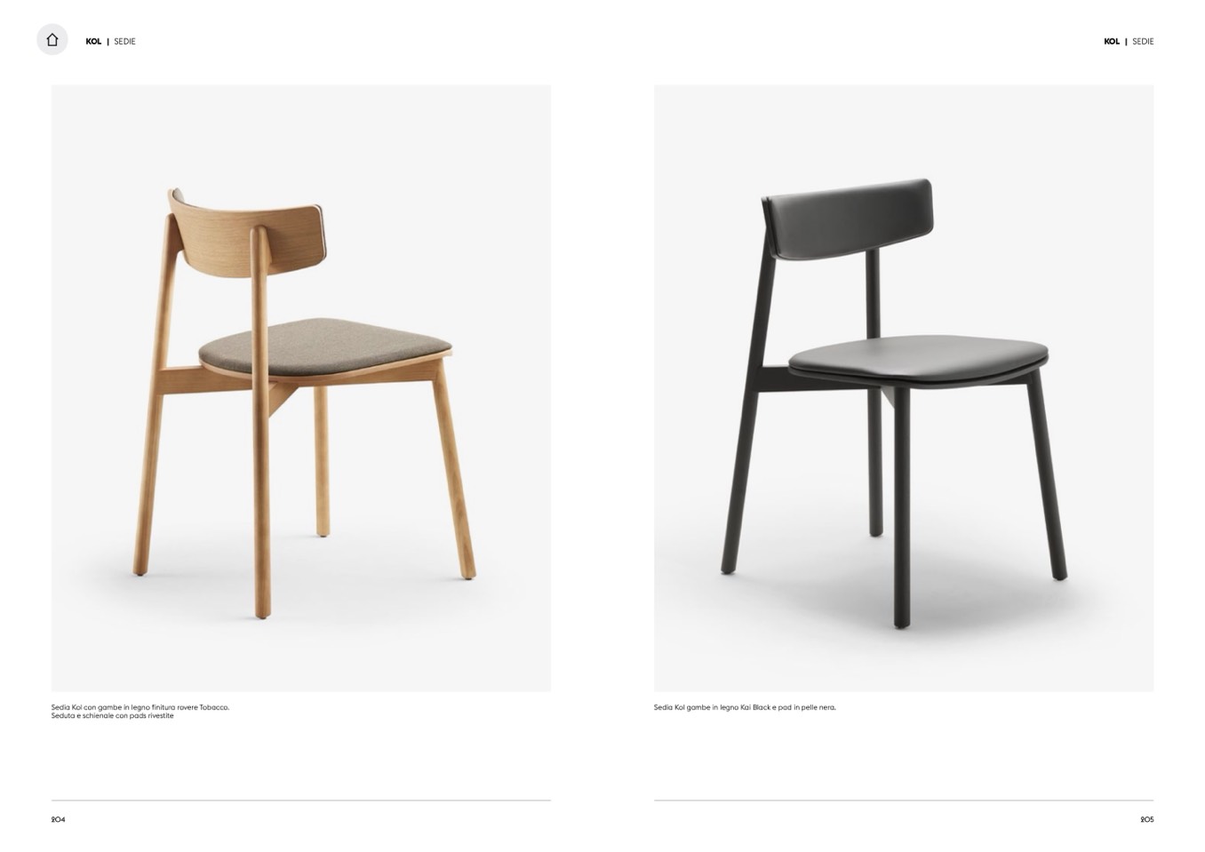 Sedia Kol con gambe in legno finitura rovere Tobacco.