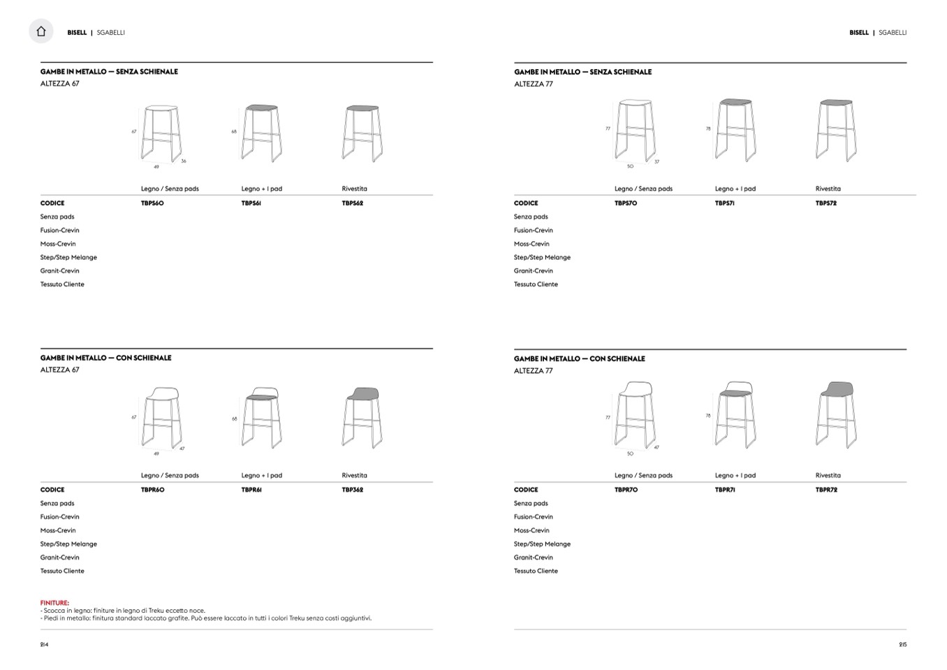 - Piedi in metallo: finitura standard laccato grafite. Può essere laccato in tutti i colori Treku senza costi aggiuntivi.