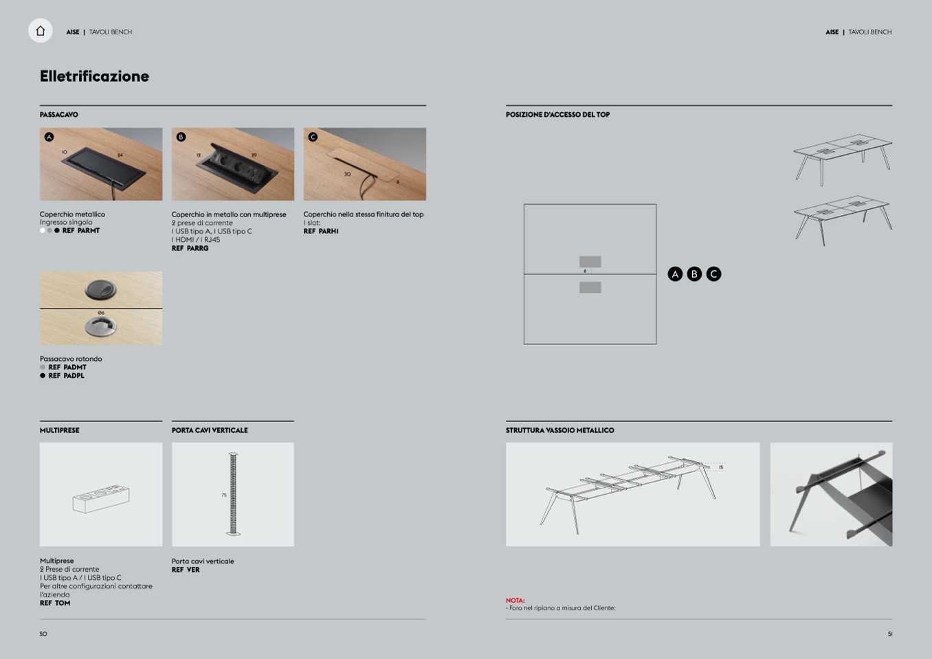 - Foro nel ripiano a misura del Cliente: 62 €.