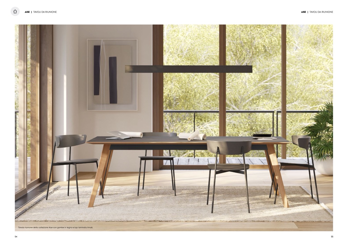 Tavolo riunione della collezione Aise con gambe in legno e top laminato tmatt.