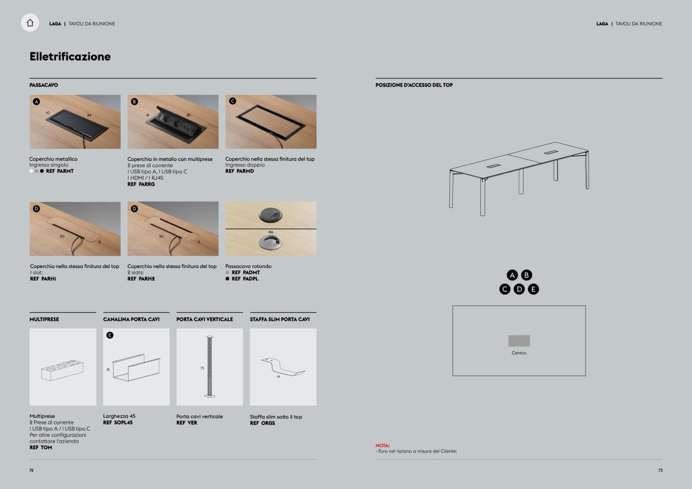 - Foro nel ripiano a misura del Cliente: 62 €.