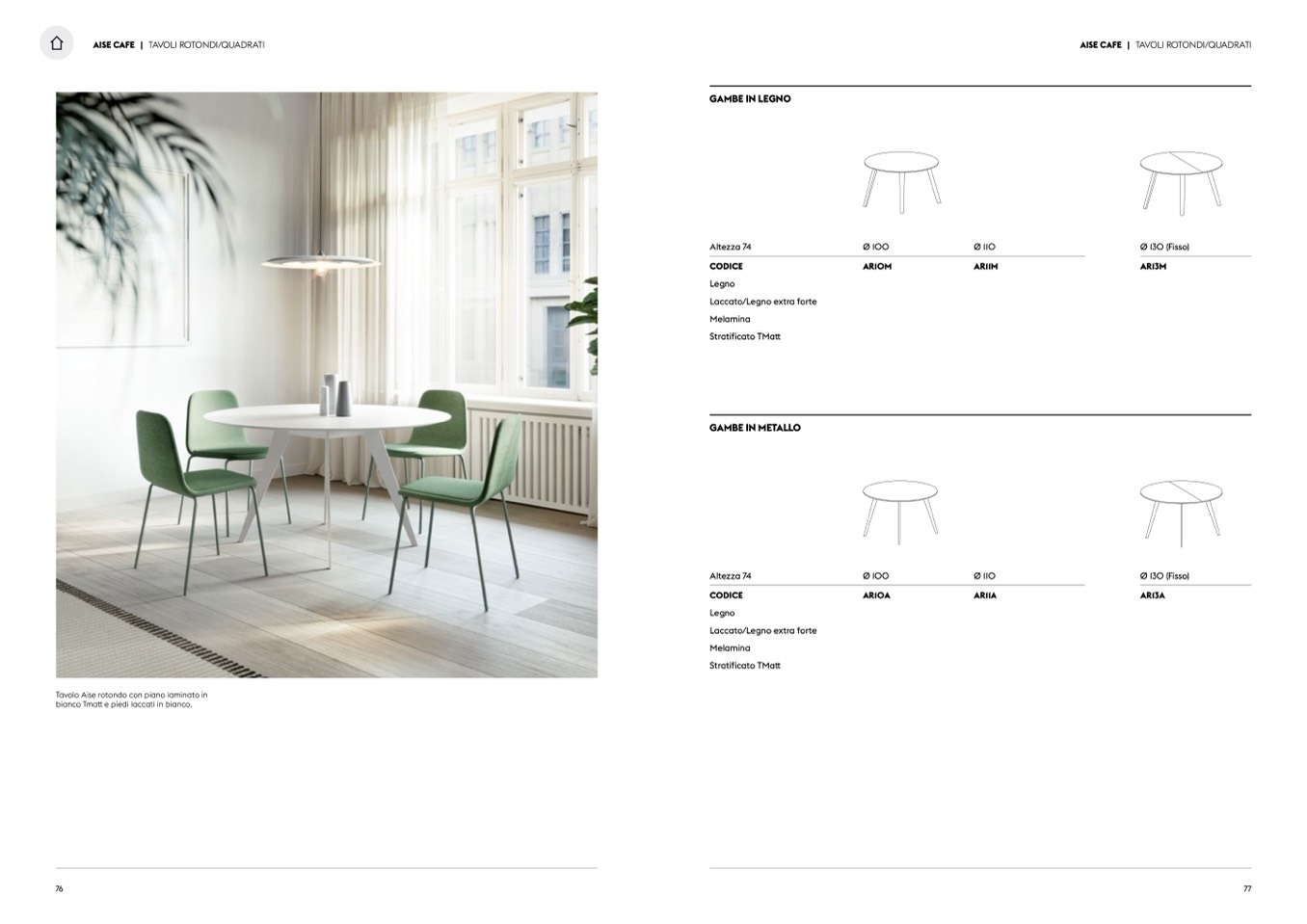 Tavolo Aise rotondo con piano laminato in
