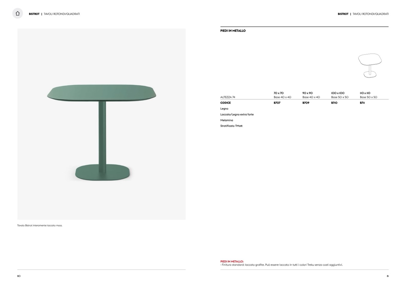 - Finitura standard: laccato grafite. Può essere laccato in tutti i colori Treku senza costi aggiuntivi.