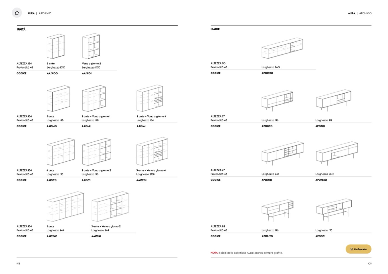 NOTA: I piedi della collezione Aura saranno sempre grafite.