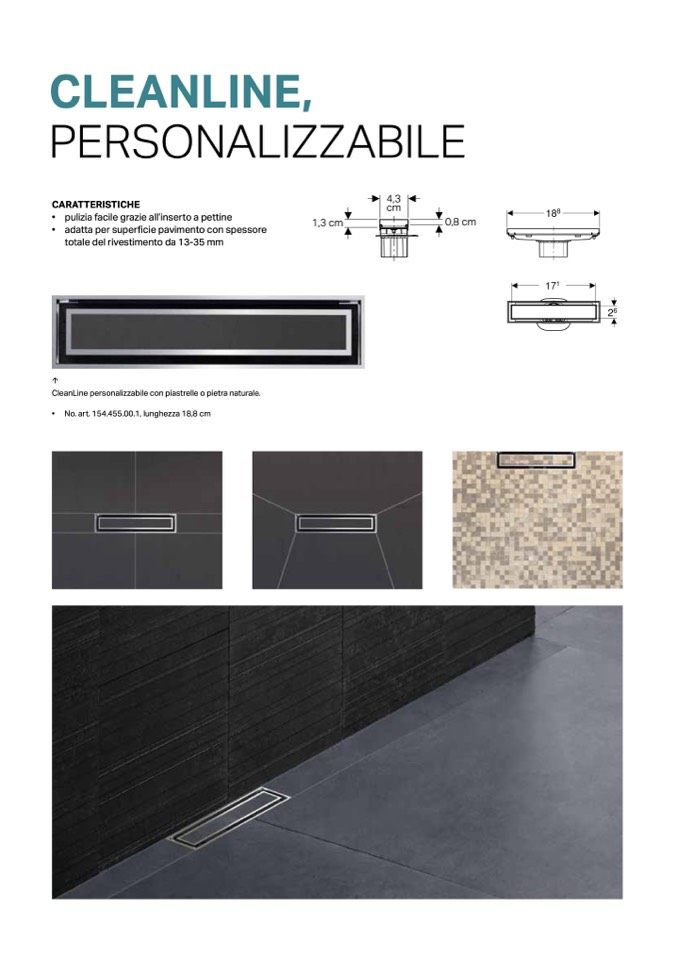 CleanLine personalizzabile con piastrelle o pietra naturale.