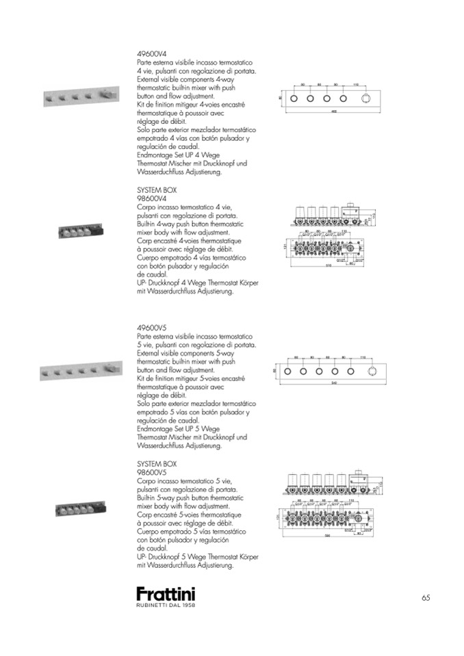 5 vie, pulsanti con regolazione di portata.