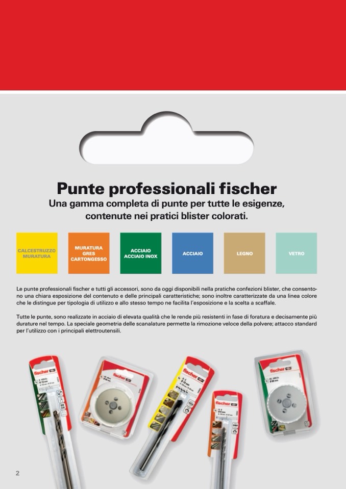 Le punte professionali fischer e tutti gli accessori, sono da oggi disponibili nella pratiche confezioni blister, che consento-
