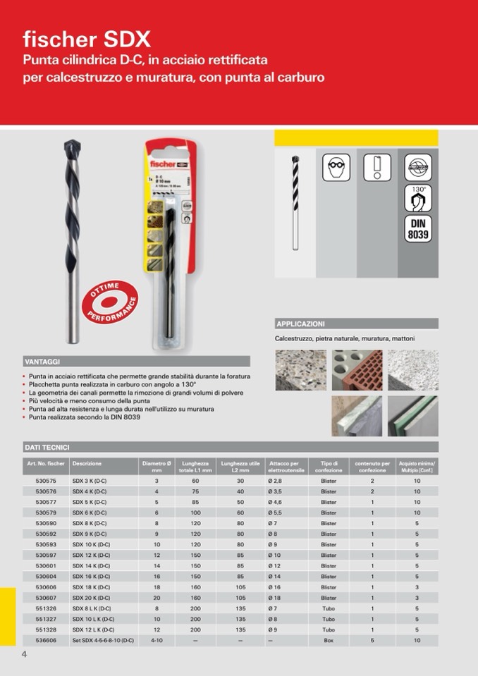Punta ad alta resistenza e lunga durata nell'utilizzo su muratura
