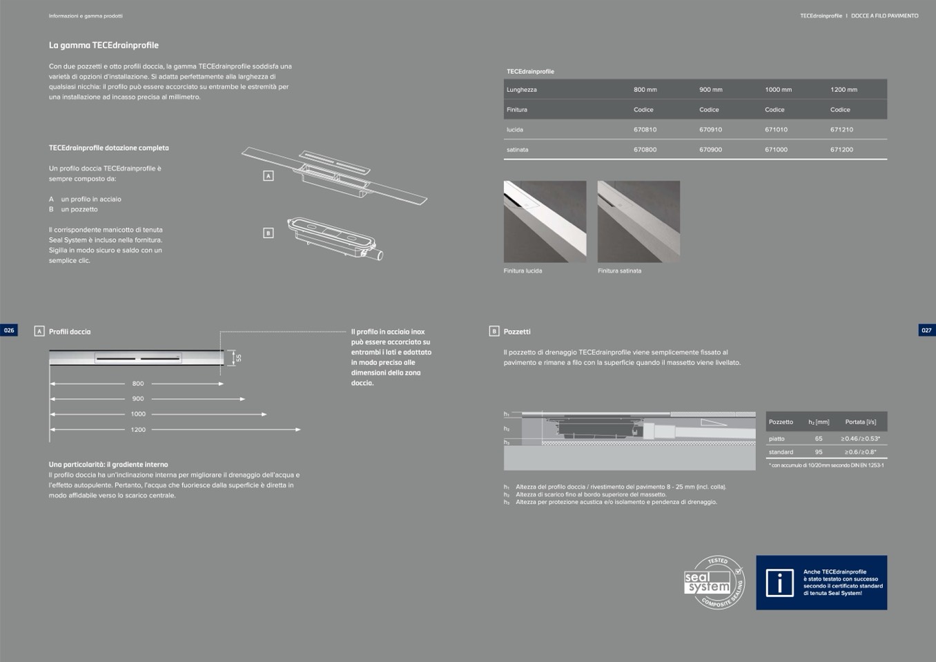 Il profilo doccia ha un’inclinazione interna per migliorare il drenaggio dell’acqua e