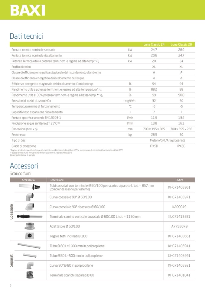 * Regime ad alta temperatura: temperatura di ritorno all’entrata della caldaia 60°C e temperature di mandata all’uscita della caldaia 80°C