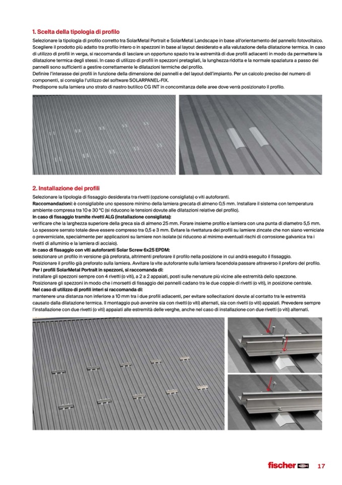 Raccomandazioni: è consigliabile uno spessore minimo della lamiera grecata di almeno 0,5 mm. Installare il sistema con temperatura