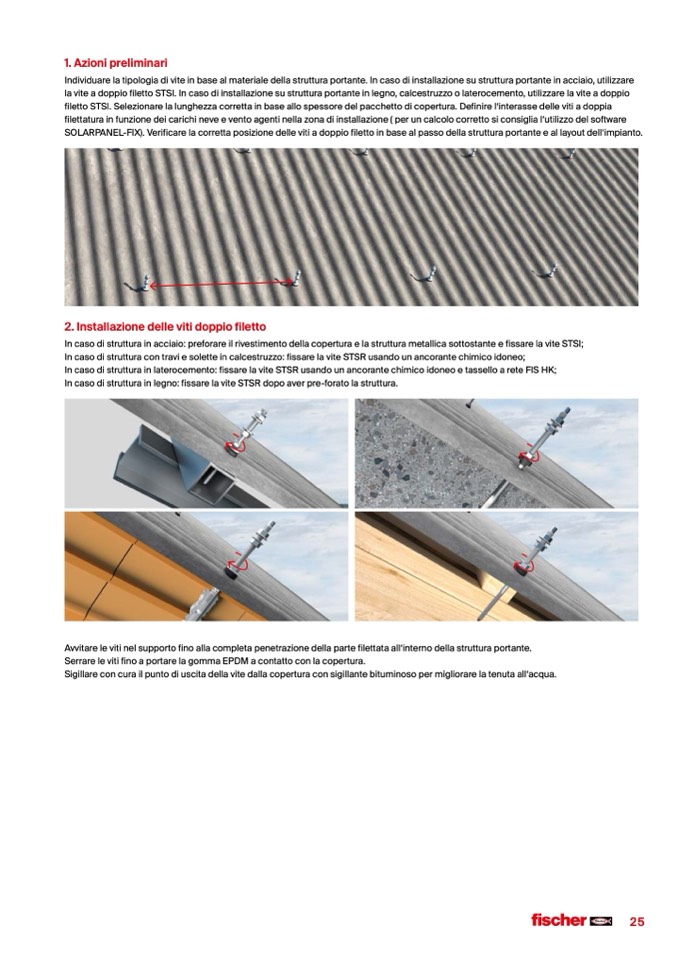SOLARPANEL-FIX). Verificare la corretta posizione delle viti a doppio filetto in base al passo della struttura portante e al layout dell‘impianto.