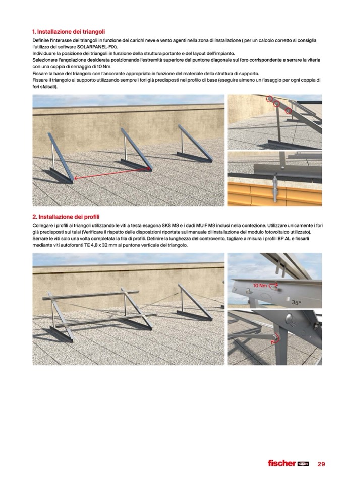 Fissare il triangolo al supporto utilizzando sempre i fori già predisposti nel profilo di base (eseguire almeno un fissaggio per ogni coppia di