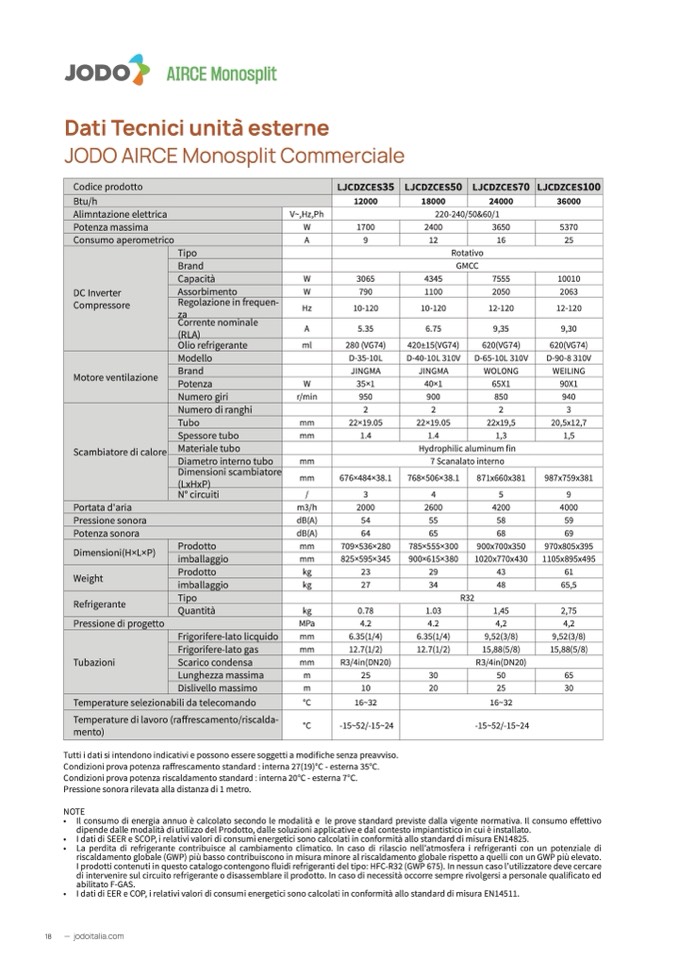 I prodotti contenuti in questo catalogo contengono fluidi refrigeranti del tipo: HFC-R32 (GWP 675). In nessun caso l’utilizzatore deve cercare
