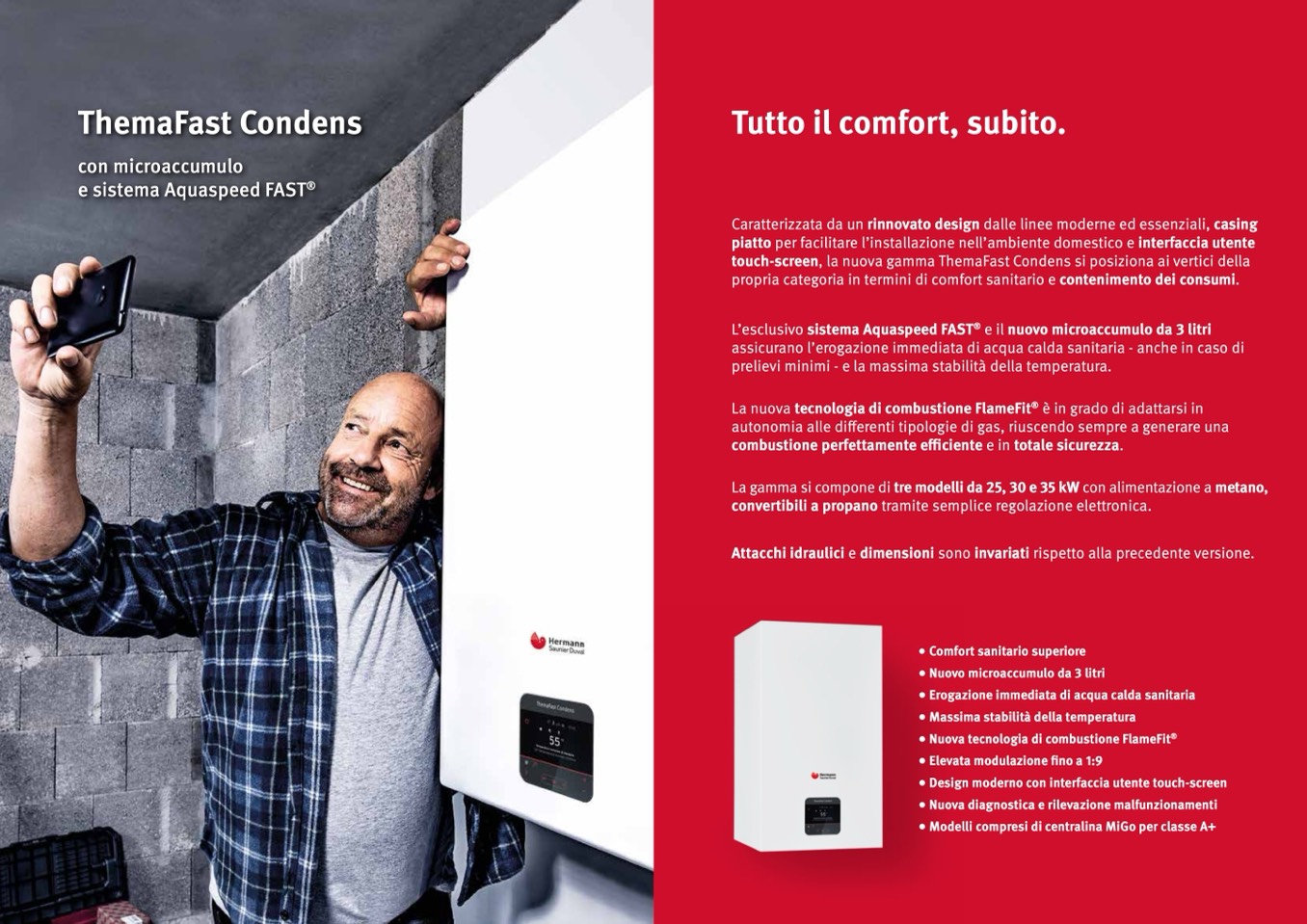 La gamma si compone di tre modelli da 25, 30 e 35 kW con alimentazione a metano,