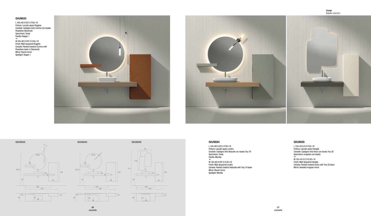 Consolle: Castagno tinto Anice con lavabo Troy 55