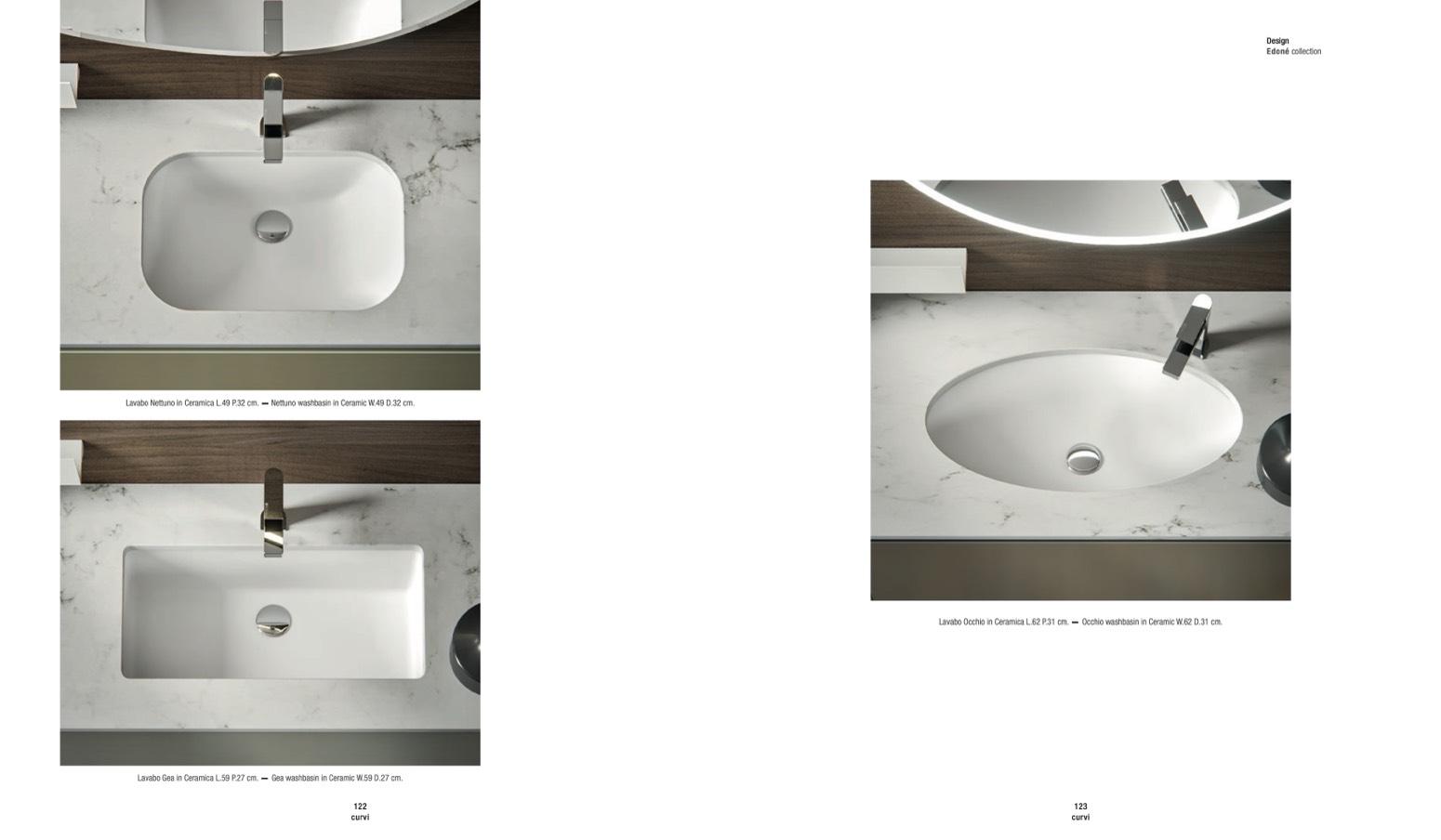 Lavabo Occhio in Ceramica L.62 P.31 cm. — Occhio washbasin in Ceramic W.62 D.31 cm.