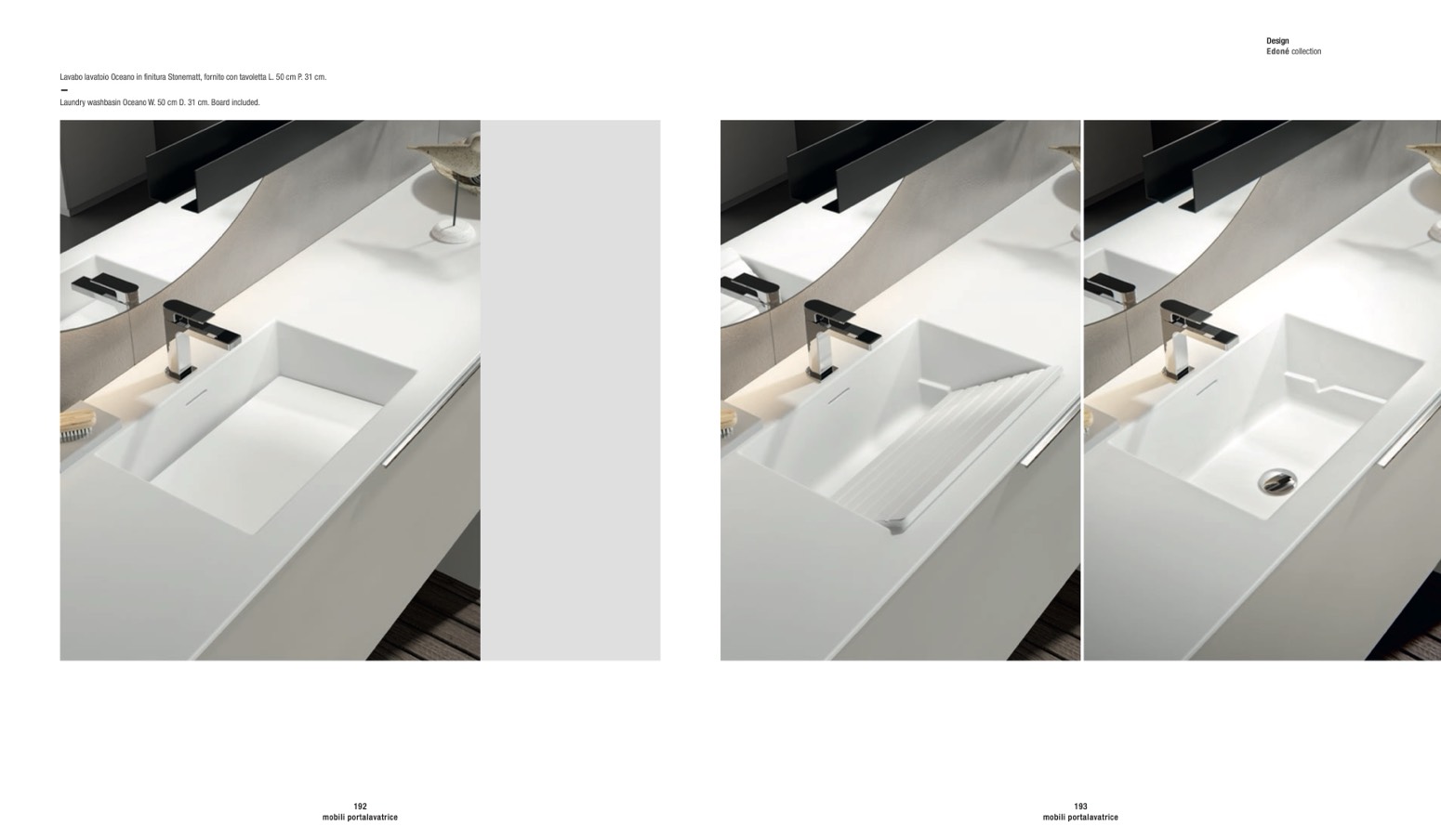 Laundry washbasin Oceano W. 50 cm D. 31 cm. Board included.