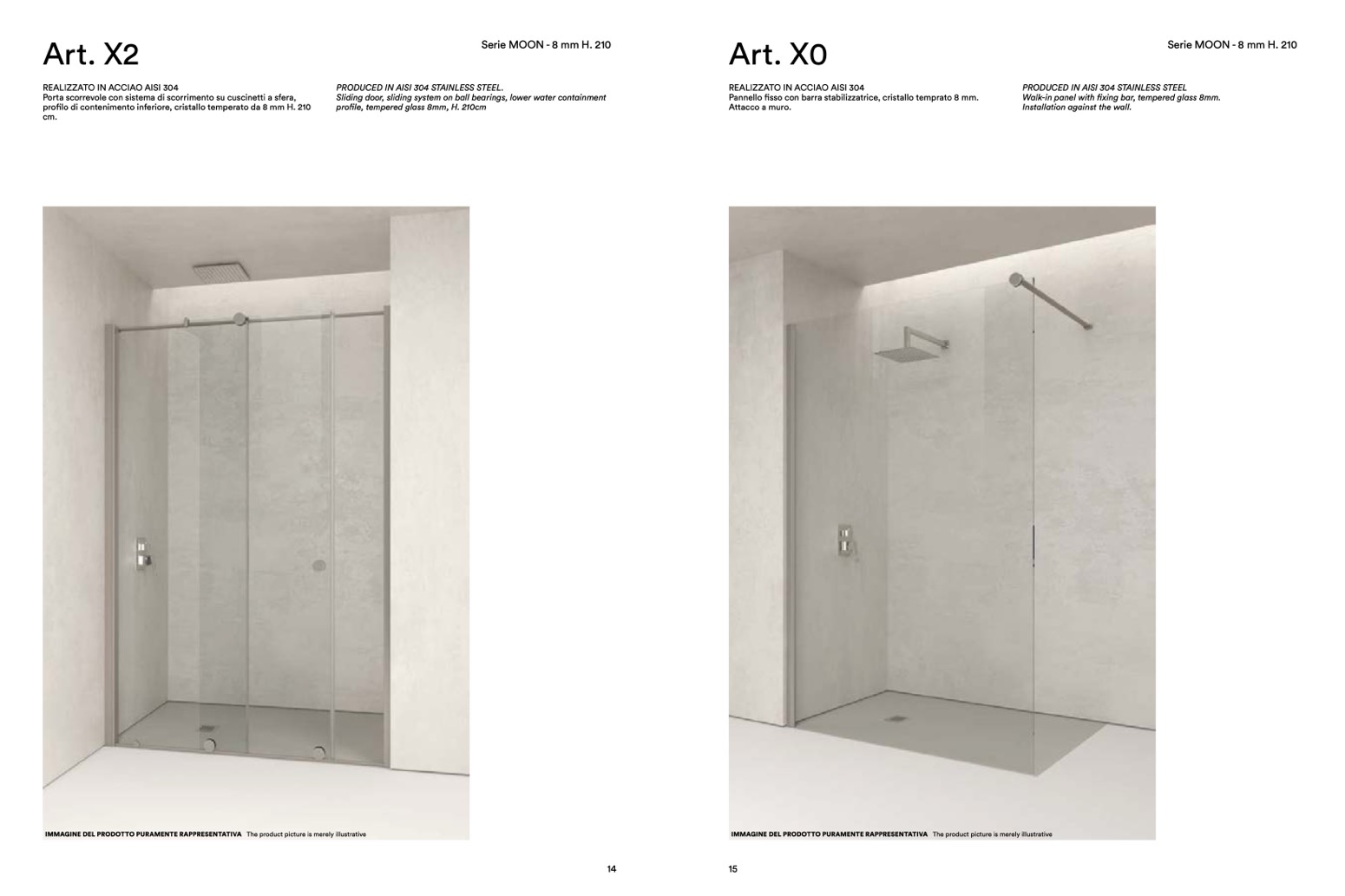 Pannello fisso con barra stabilizzatrice, cristallo temprato 8 mm.