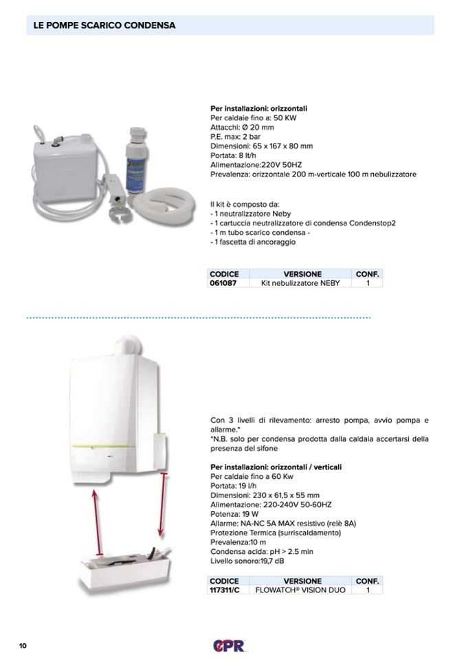 *N.B. solo per condensa prodotta dalla caldaia accertarsi della