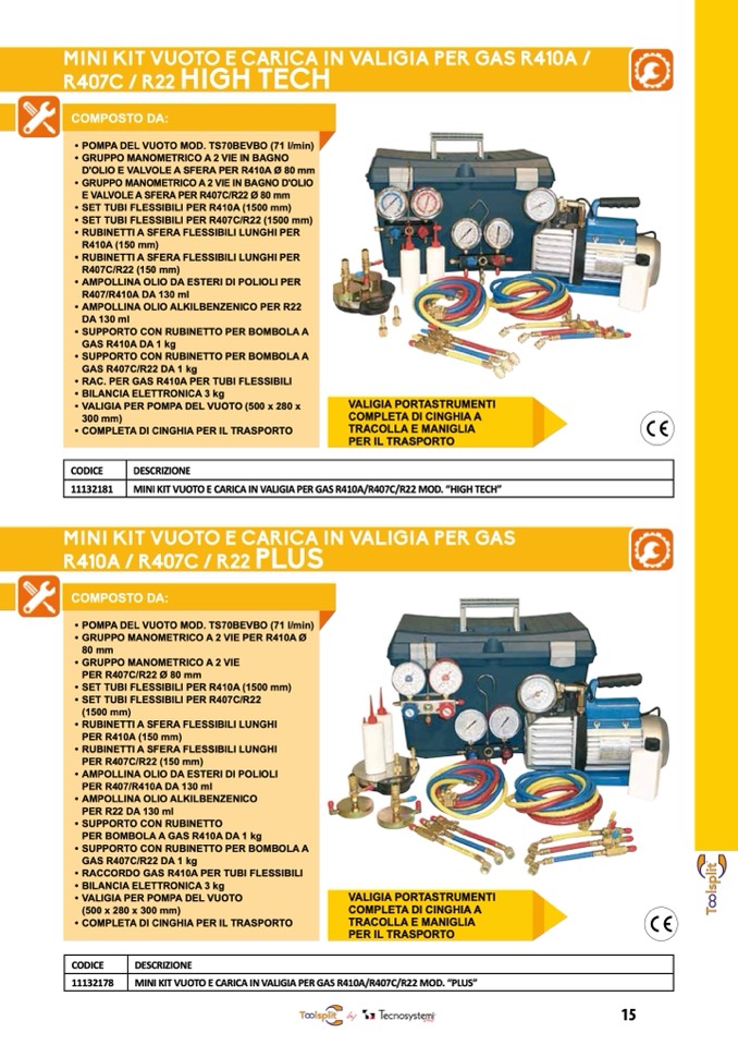 11132178 MINI KIT VUOTO E CARICA IN VALIGIA PER GAS R410A/R407C/R22 MOD. “PLUS”