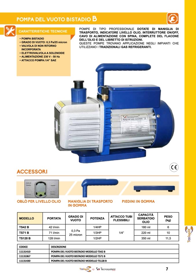 11131067 POMPA DEL VUOTO BISTADIO MODELLO TS71 B