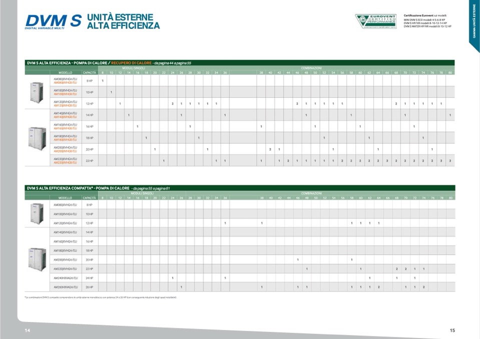 *Le combinazioni DVM S compatte comprendono le unità esterne monoblocco con potenza 24 e 2 HP con conseguente riduzione degli spazi installativi.