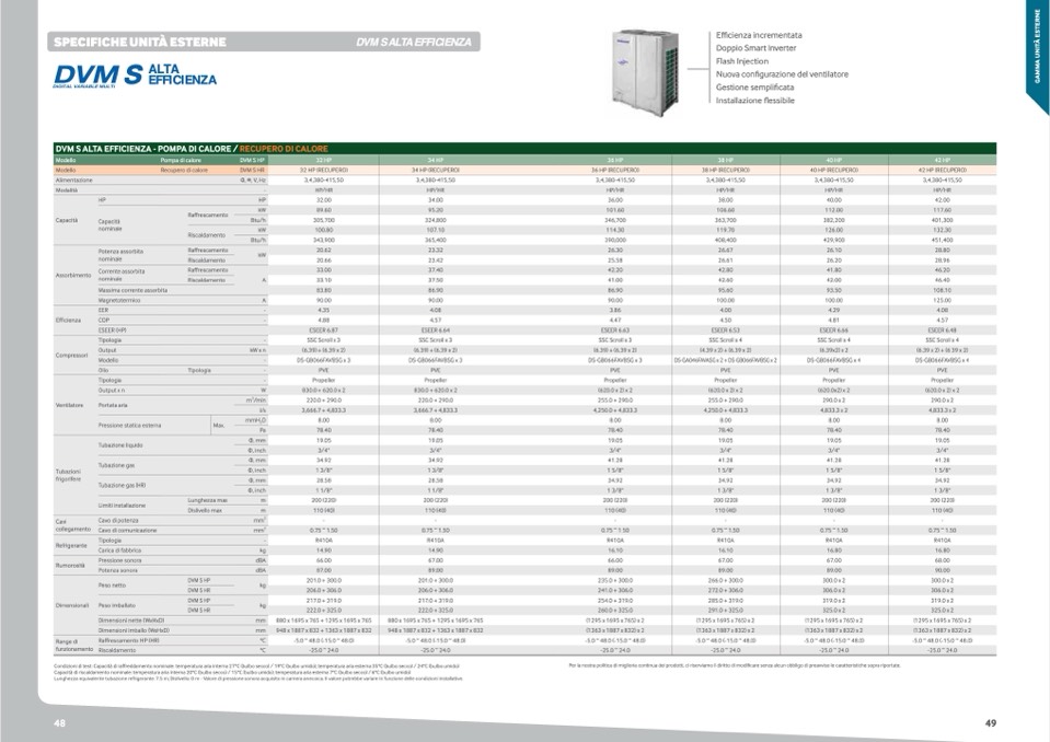 Condizioni di test: Capacità di rareddamento nominale: temperatura aria interna 27°C bulbo secco / 19°C bulbo umido; temperatura aria esterna 35°C bulbo secco / 24°C bulbo umido