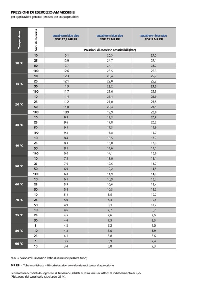 SDR = Standard Dimension Ratio (Diametro/spessore tubo)