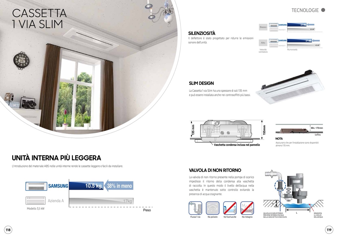L’introduzione del materiale ABS nelle unità interne rende le cassette leggere e facili da installare.