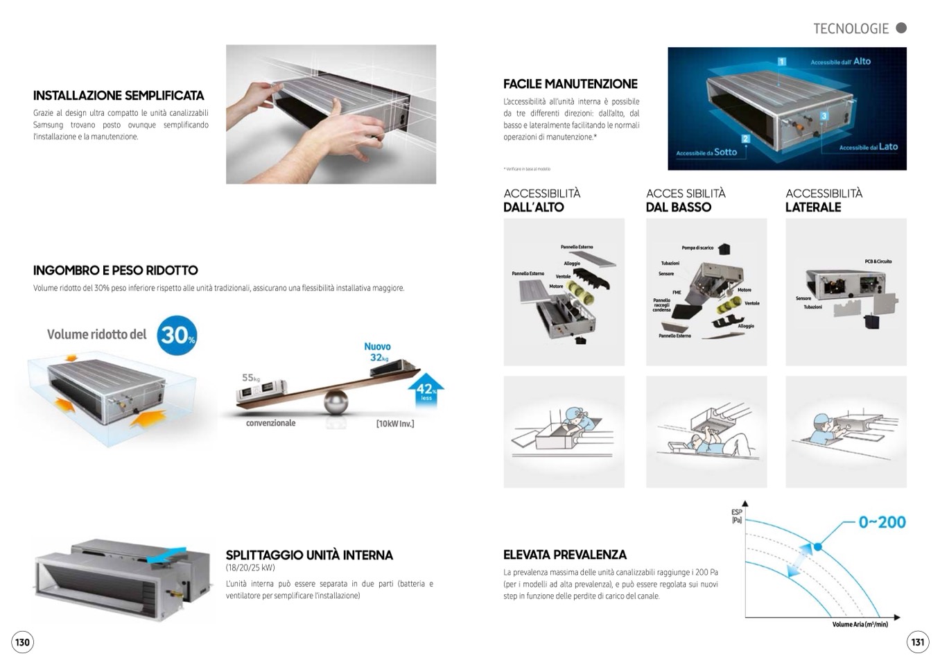 Volume ridotto del 30% peso inferiore rispetto alle unità tradizionali, assicurano una flessibilità installativa maggiore.