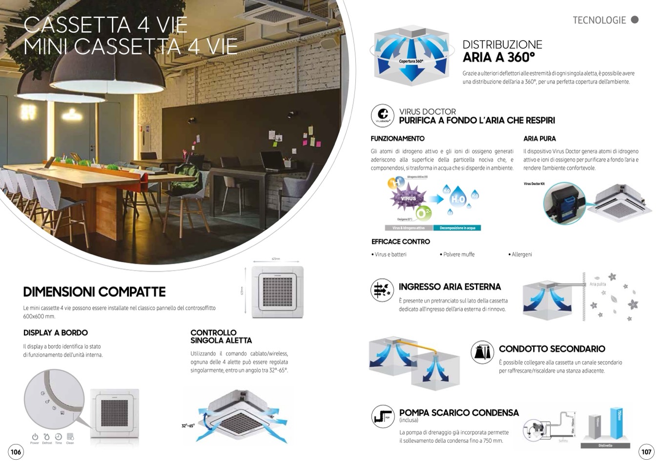una distribuzione dell’aria a 360, per una perfetta copertura dell’ambiente.