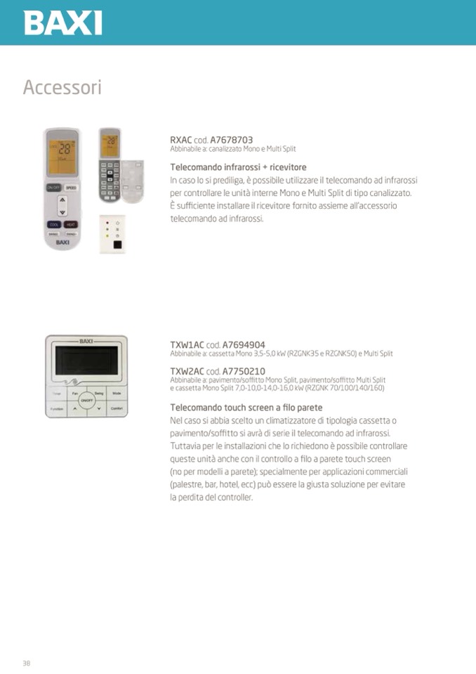 (no per modelli a parete); specialmente per applicazioni commerciali